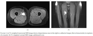 diagnóstico foi feito: uma ruptura intramuscular do adutor longo.
