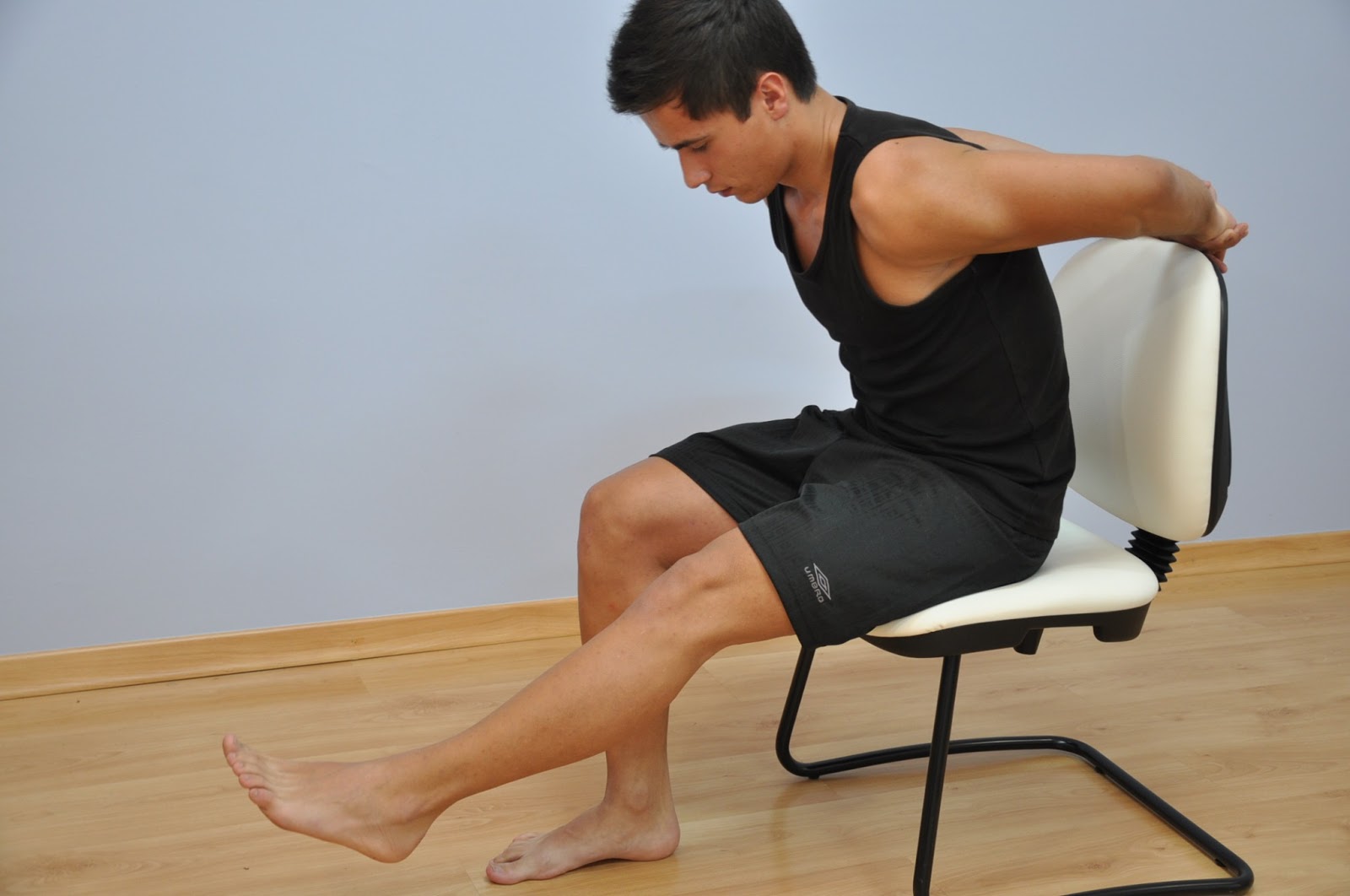 Mantenha a posição durante 8 segundos. Retorne lentamente à posição inicial.